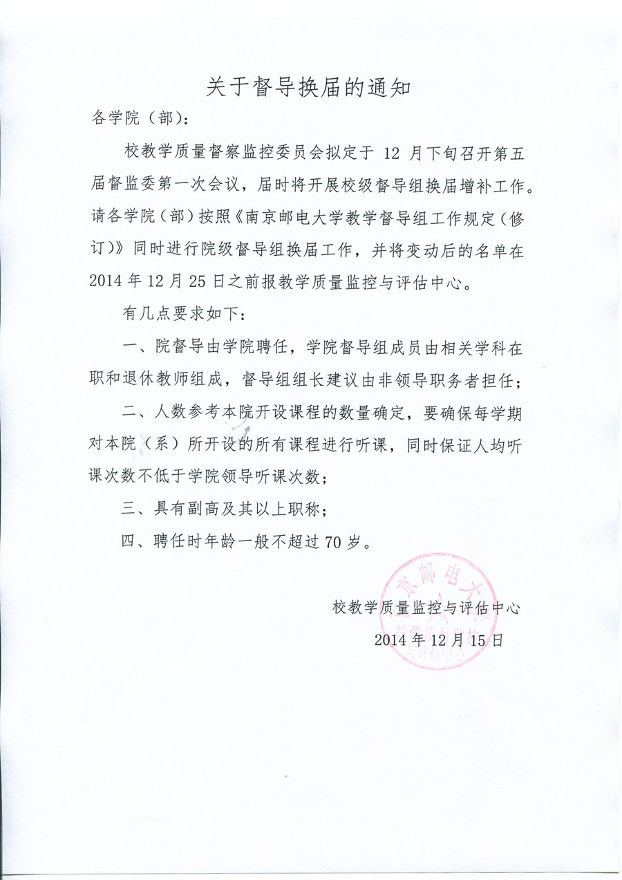 关于督导换届的通知