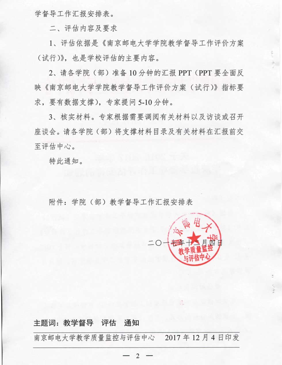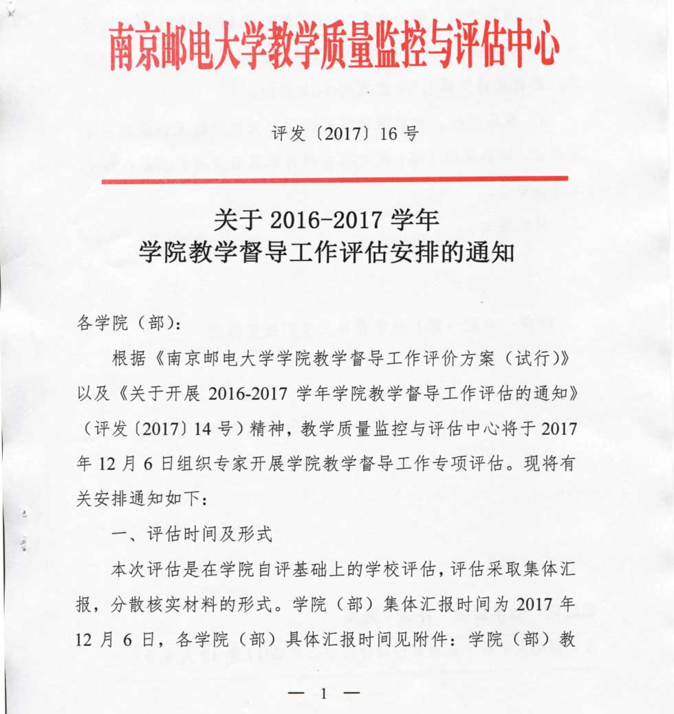 关于2016-2017学年学院教学督导工作评估安排的通知