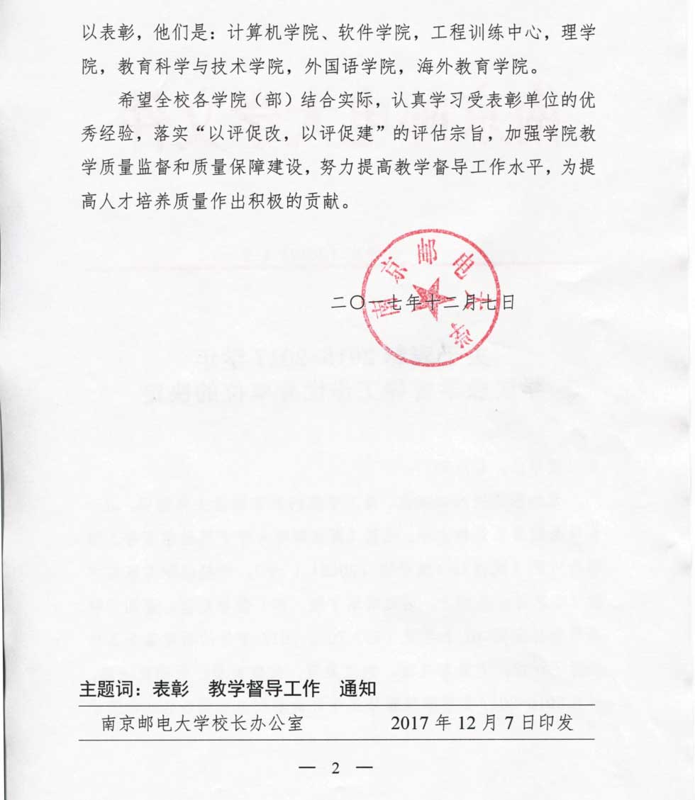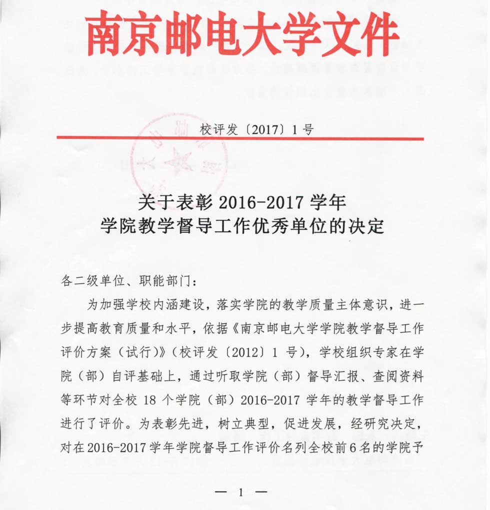 关于表彰2016—2017学年学院教学督导工作优秀单位的决定