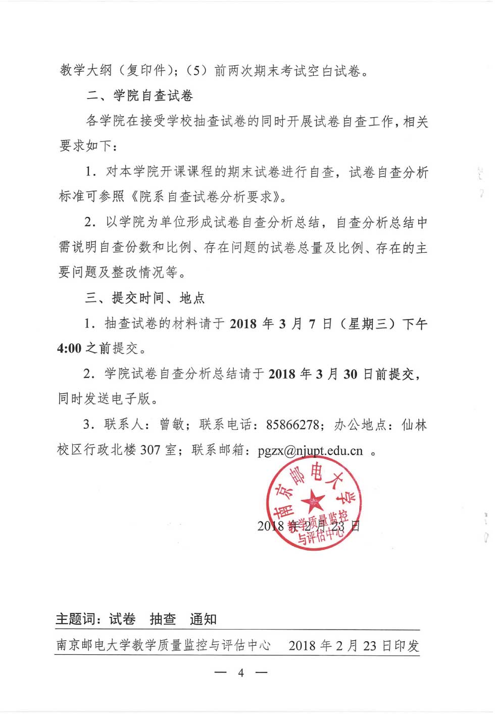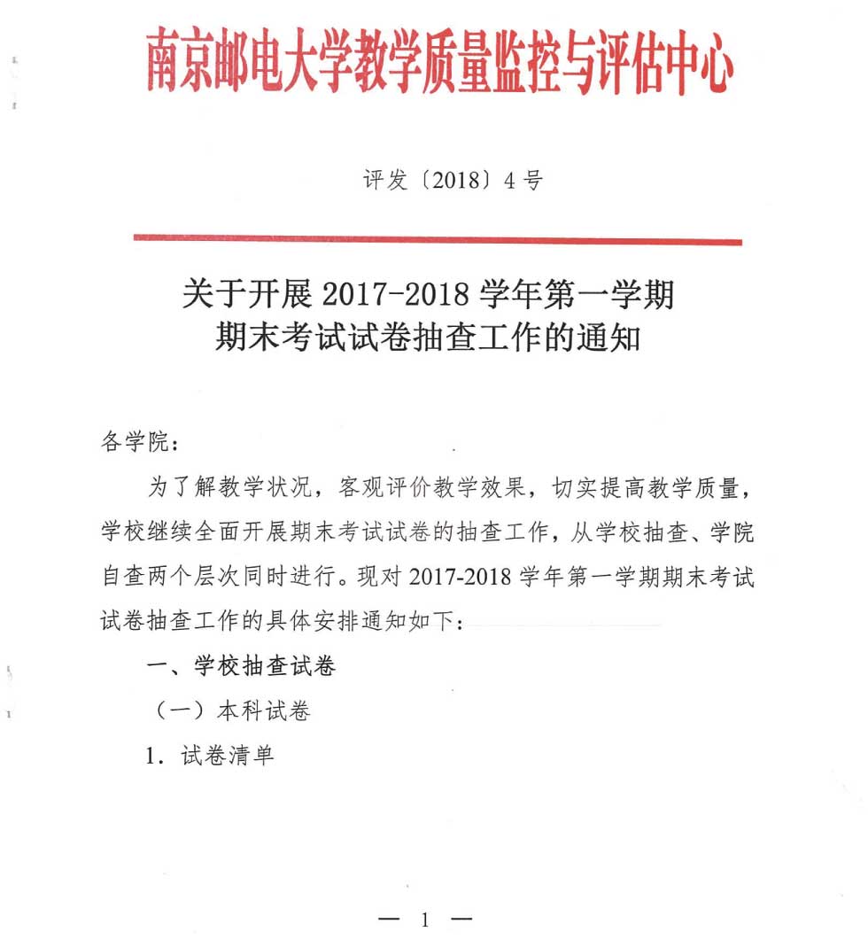 关于开展2017-2018寻第一学期期末考试试卷抽查工作的通知