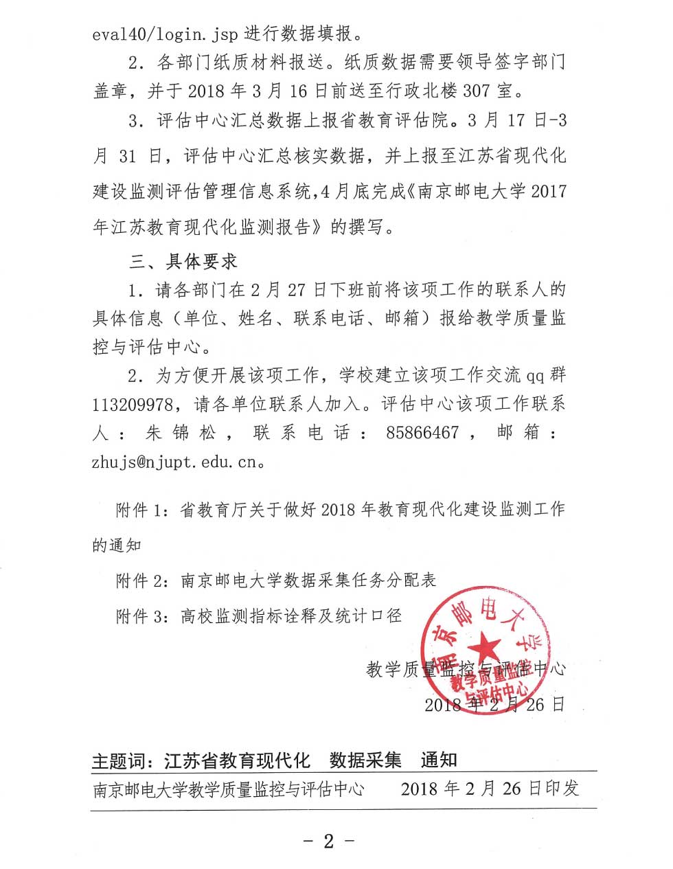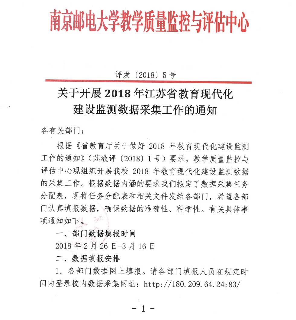 关于开展2018年江苏省教育现代化建设监测数据采集工作的通知