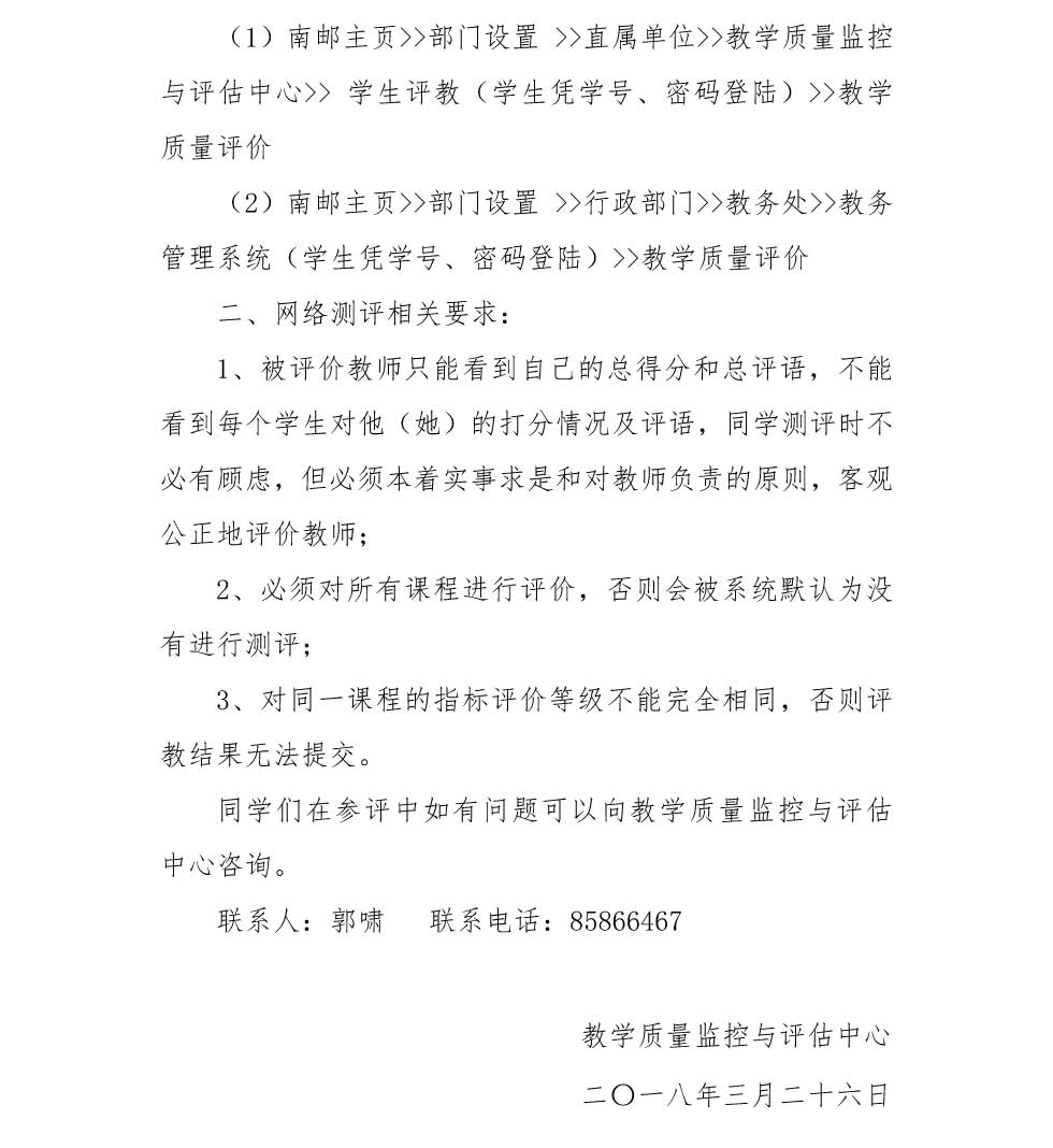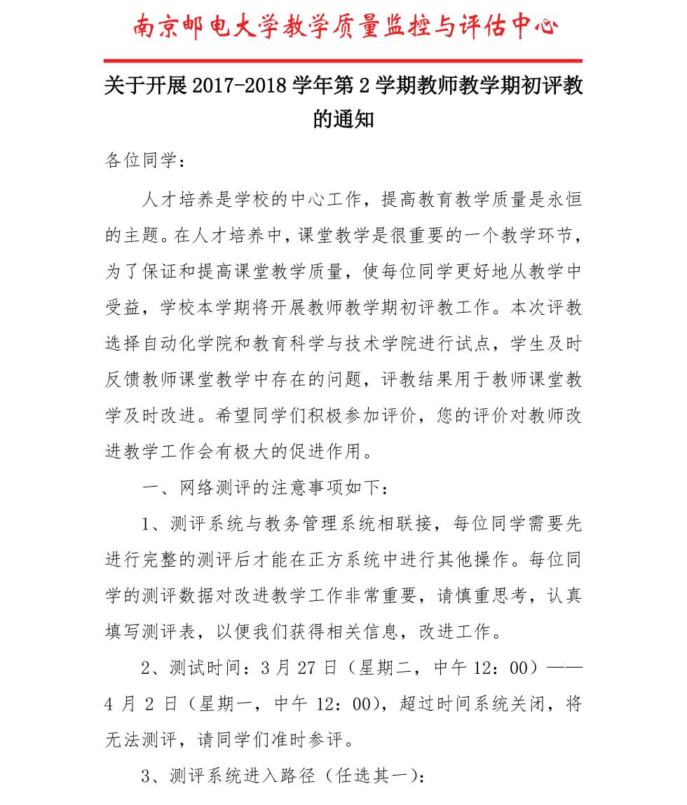 关于开展2017-2018学年第2学期教师教学期初评教的通知