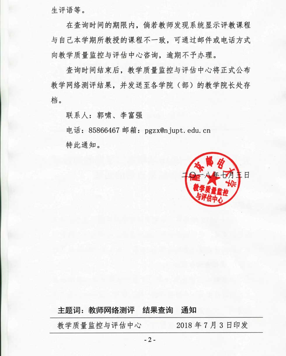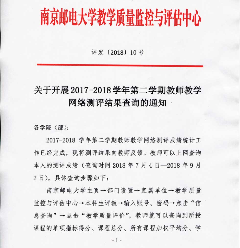 关于开展2017-2018学年第二学期教师教学网络测评结果查询的通知