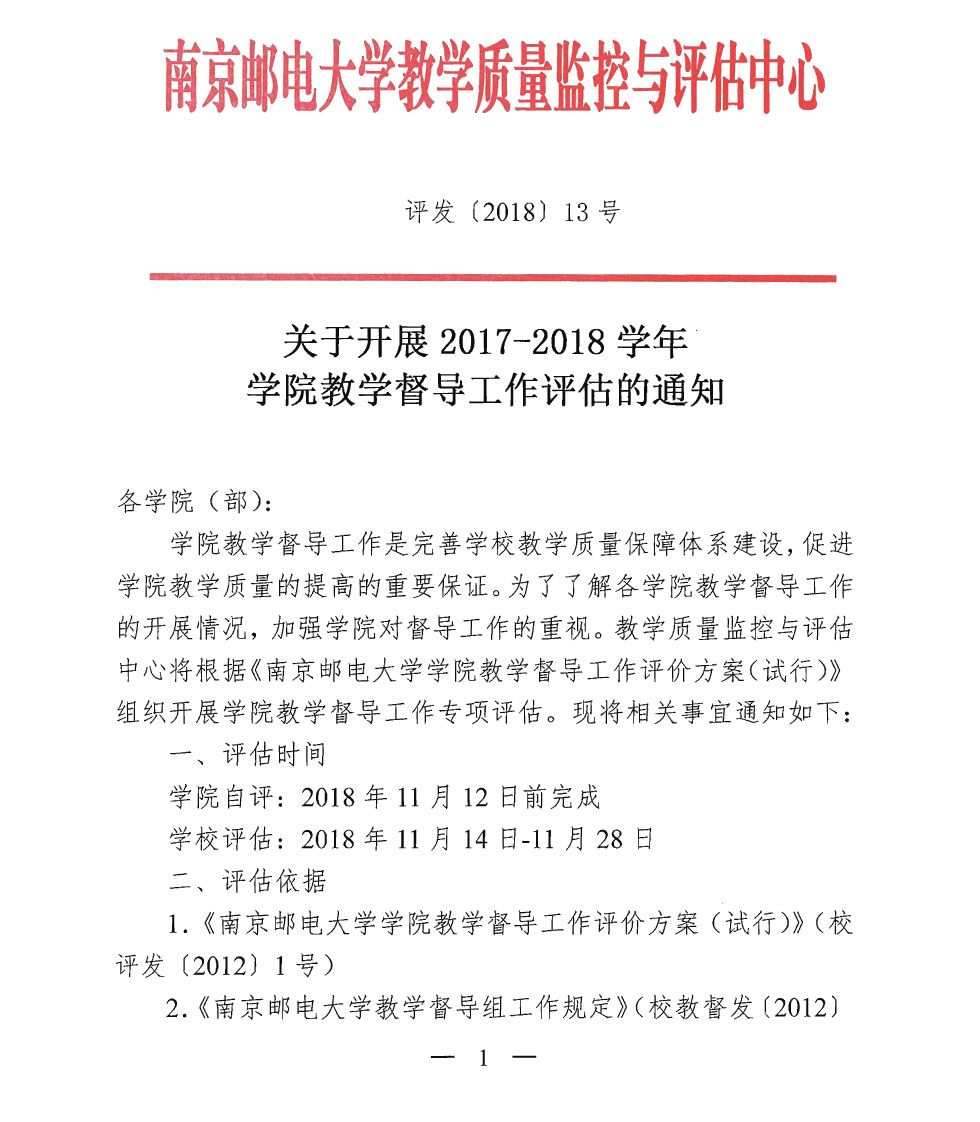 关于开展2017-2018学年学院教学督导工作评估的通知