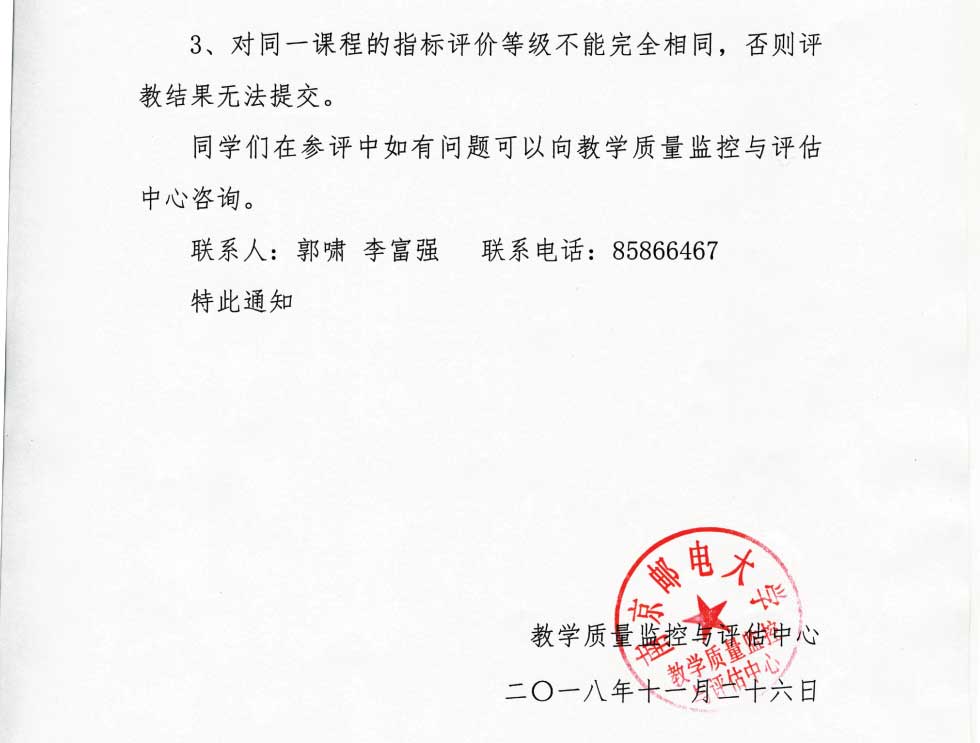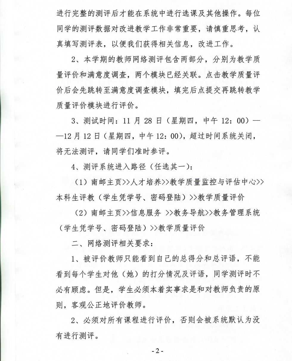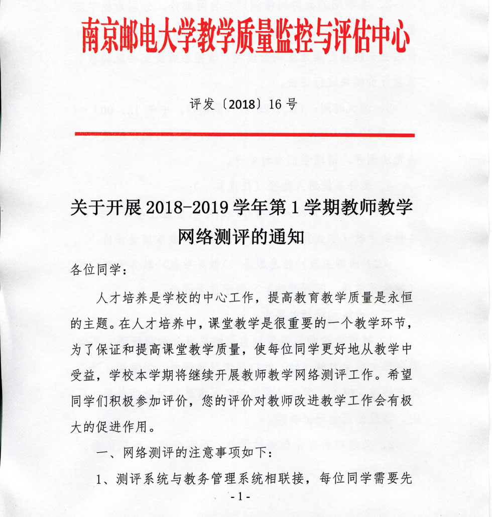 关于开展2018-2019学年第1学期教师教学网络测评的通知
