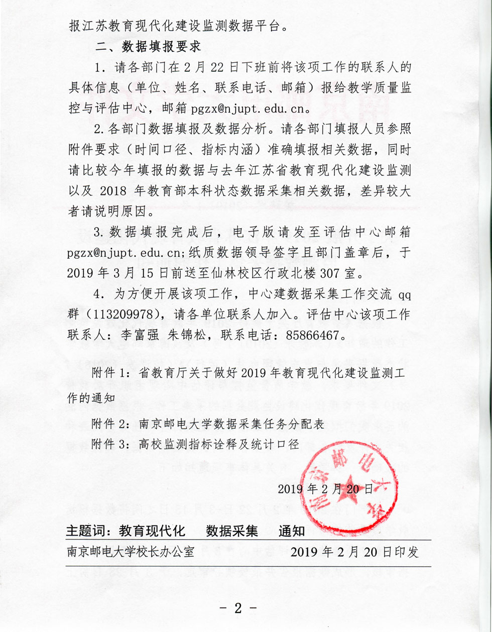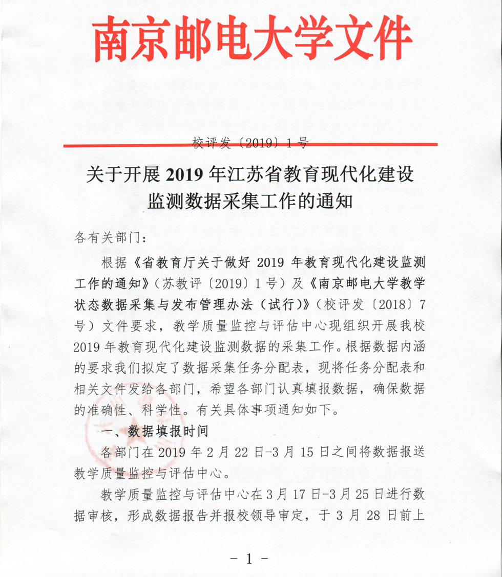 关于开展2019年江苏省教育现代化建设监测数据采集工作的通知