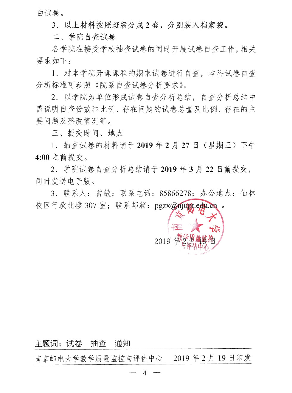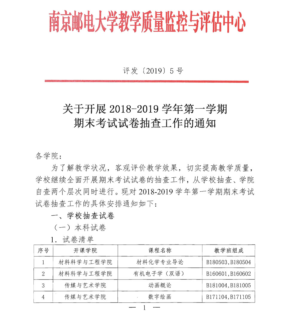 关于开展2018-2019学年第一学期期末考试试卷抽查工作的通知