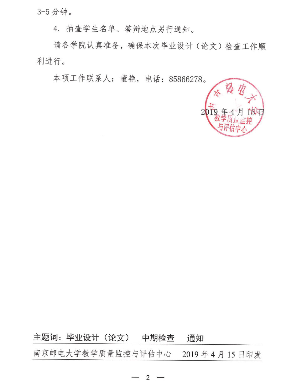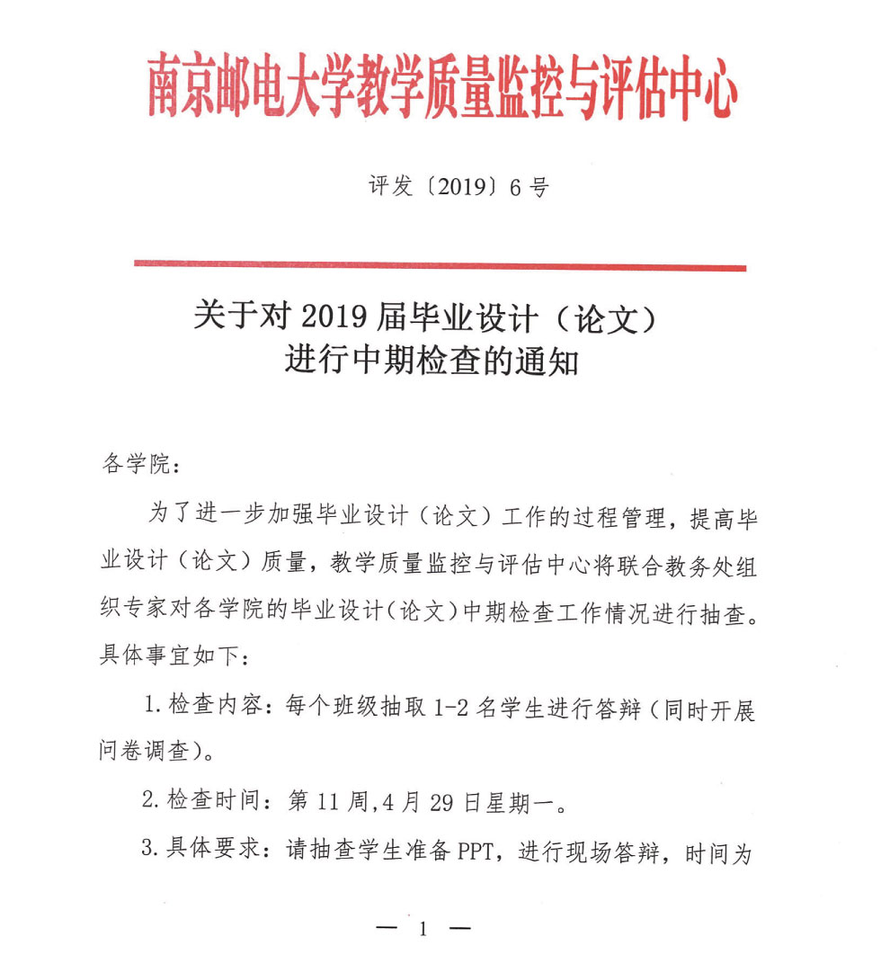 关于对2019届毕业设计(论文)进行中期检查的通知