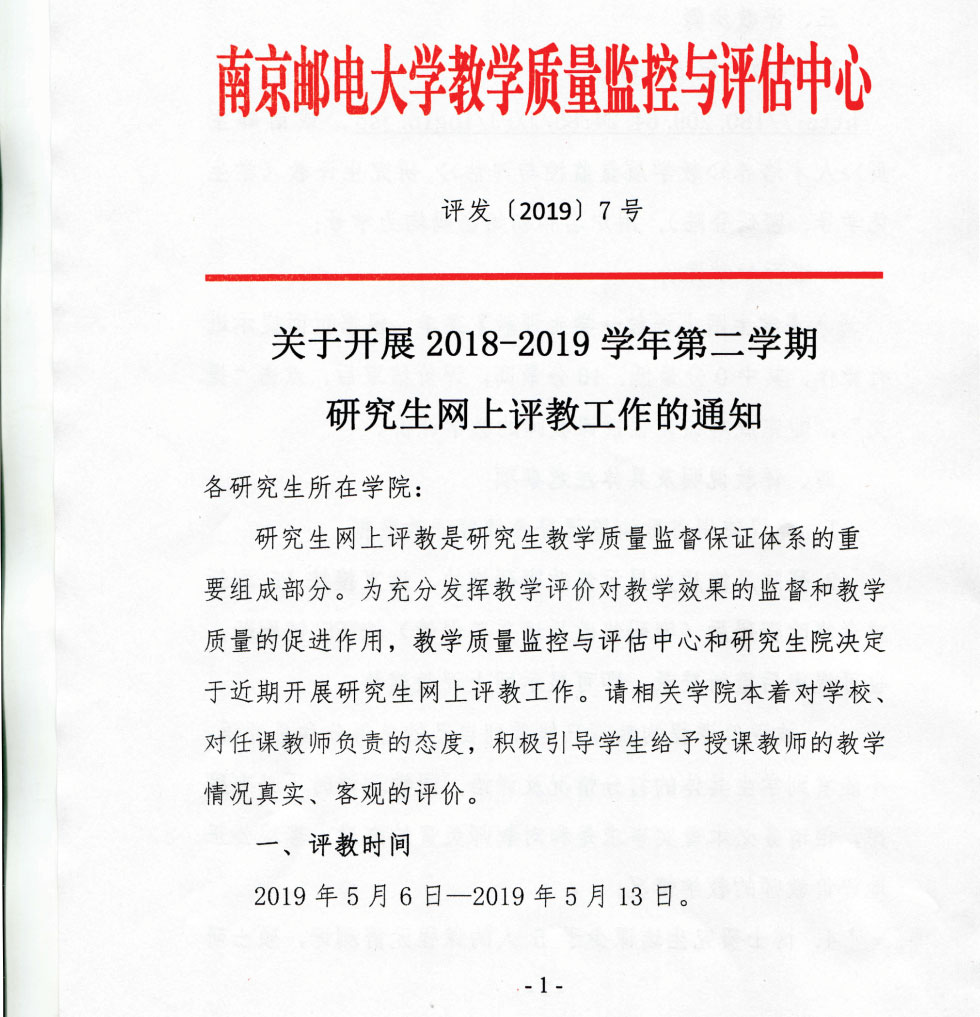 关于开展2018-2019学年第二学期研究生网上评教工作的通知