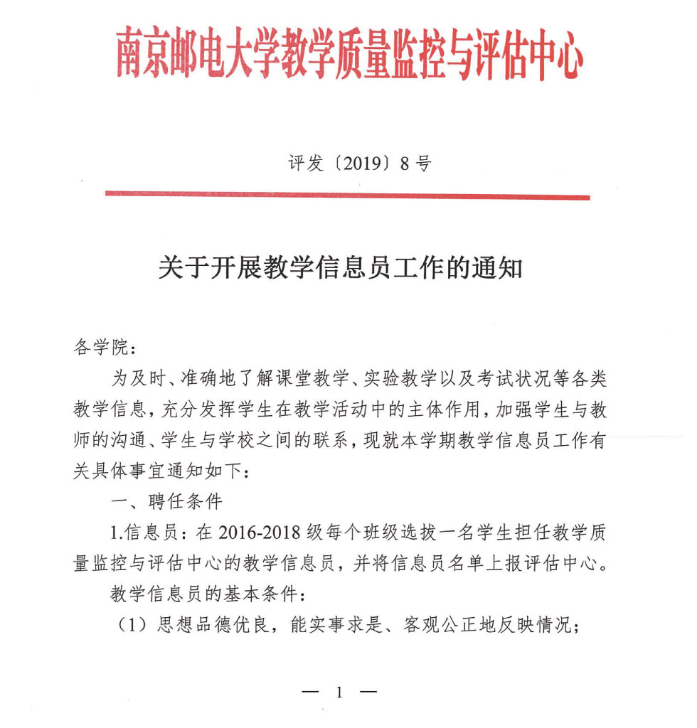 关于开展教学信息员工作的通知