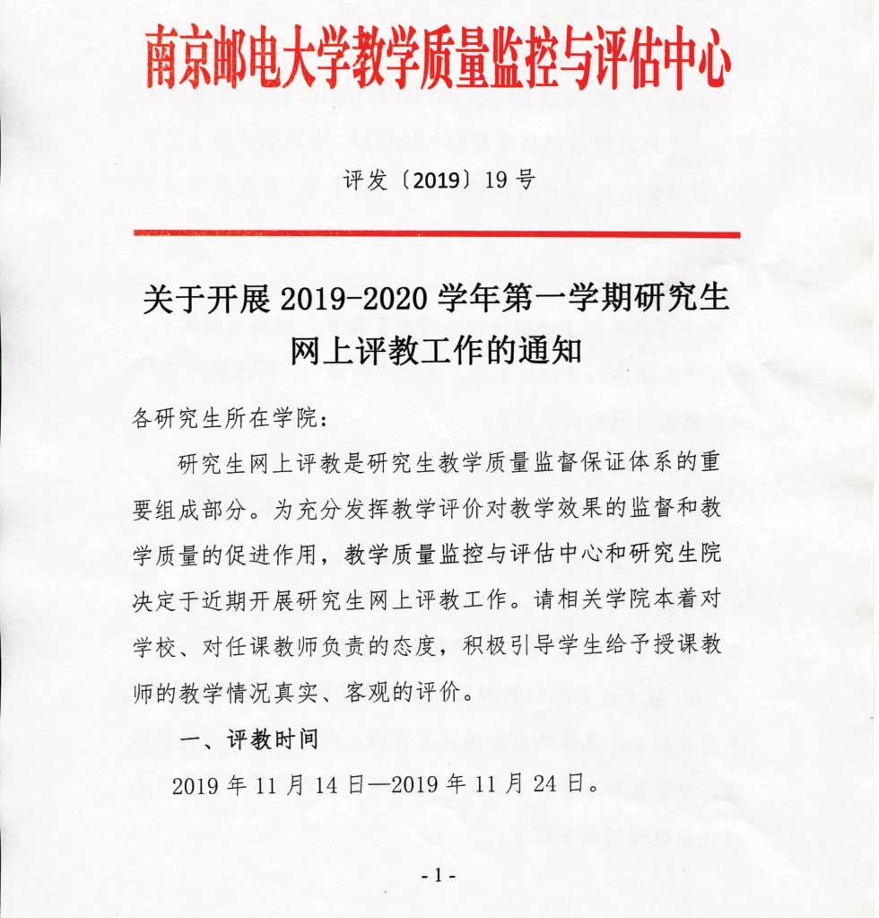 关于开展2019-2020学年第一学期研究生网上评教工作的通知