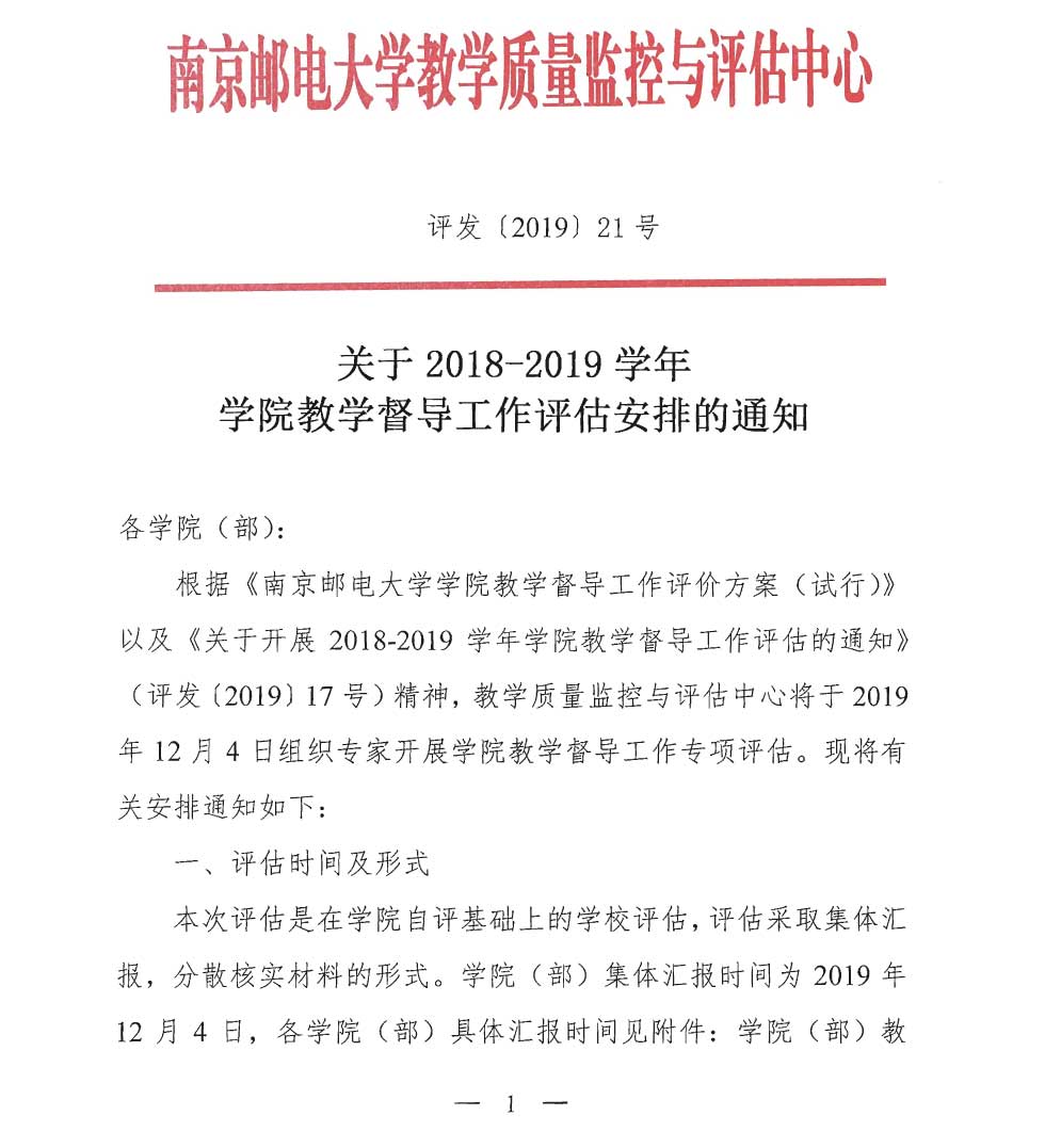 关于2018-2019学年学院教学督导工作评估安排的通知