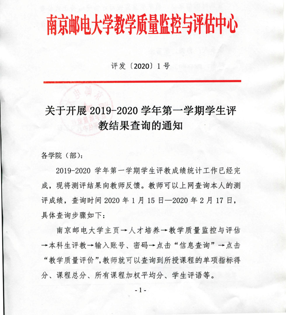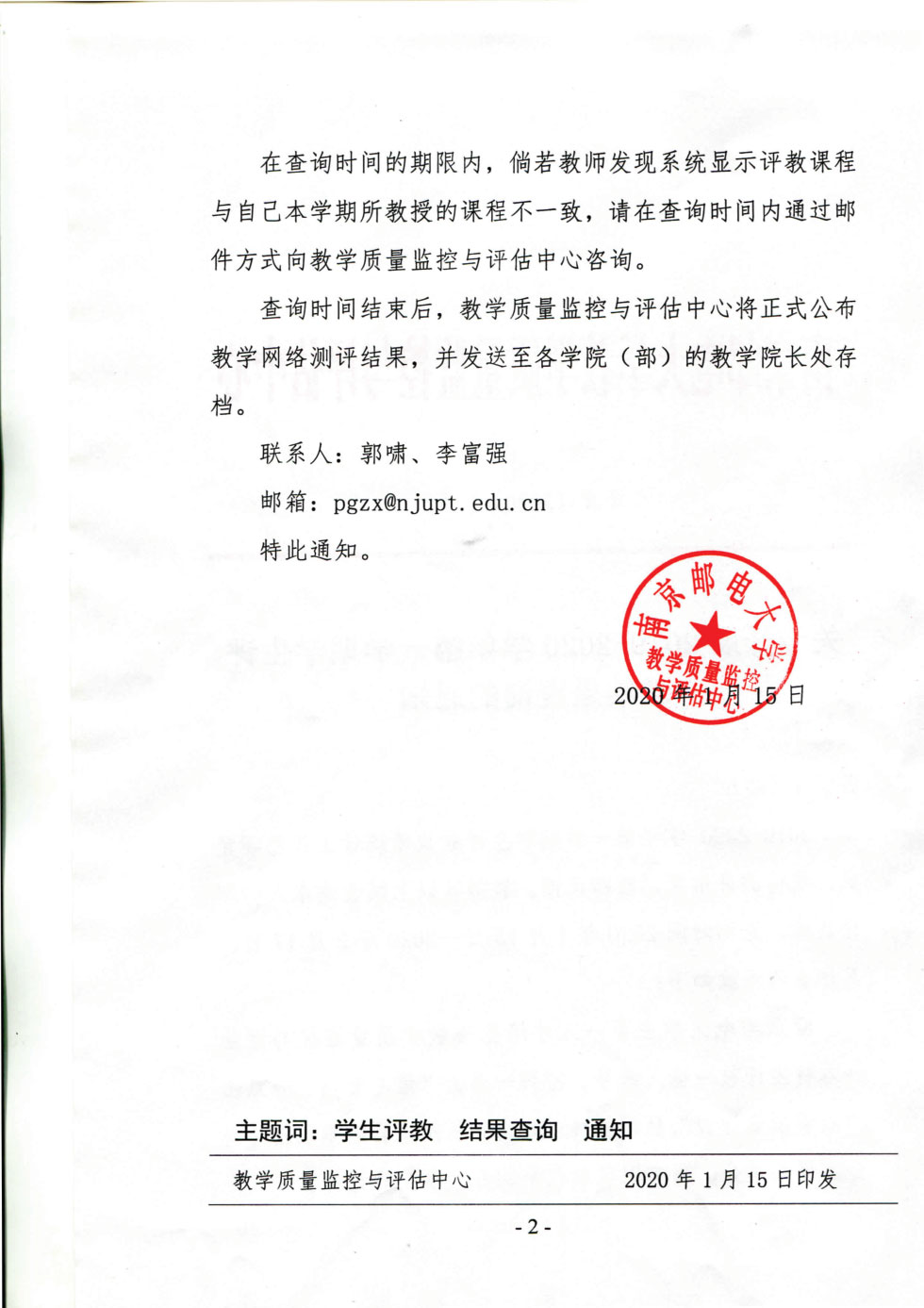 关于开展2019-2020学年第一学期学生评教结果查询的通知