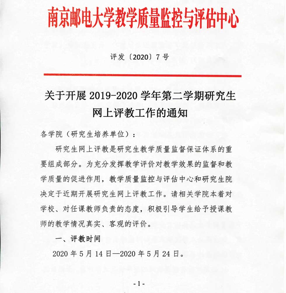 关于开展2019-2020学年第二学期研究生网上评教工作的通知